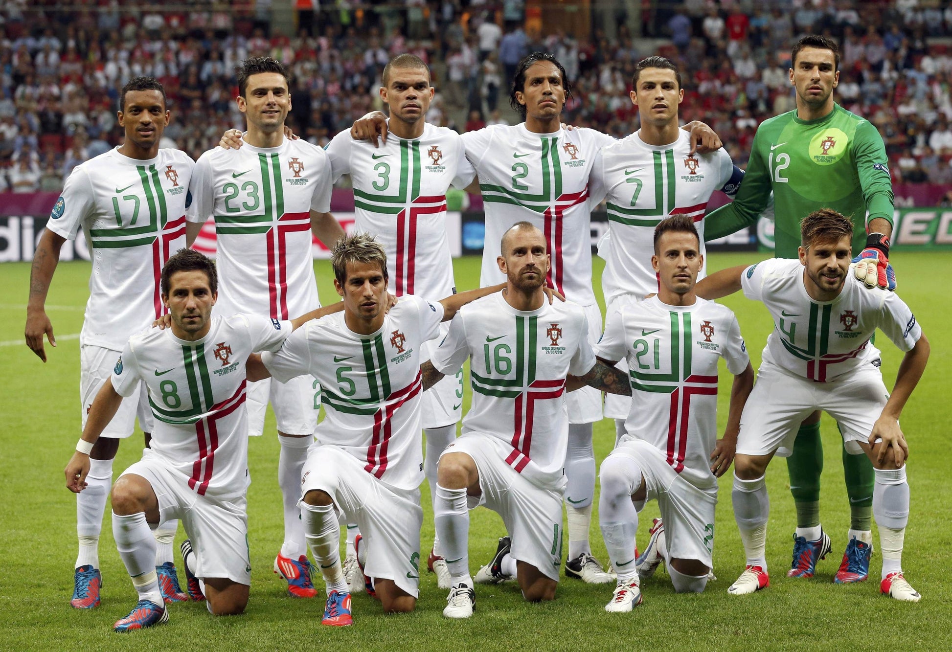 Das LEGENDÄRE Trikot der Seleção das Quinas Tugas von der EM 2012. Mit dabei die LEGENDEN #3 PEPE, #17 NANI und #7 CRISTIANO RONALDO. Streif dir dieses Stück Geschichte über.